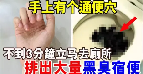 便秘10天都拉不出,手上有個通便穴,按3分鐘立馬去廁所,排出大量黑臭宿便