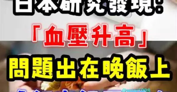 日本研究:血壓升高,問題出在晚飯上?提醒:晚飯牢記「兩不吃」!