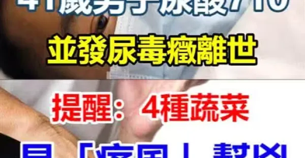 41歲男子尿酸值710,並發尿毒症離世,提醒:4種蔬菜是「痛風」幫凶!