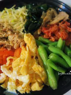 看韓劇里的拌飯是不是很好吃阿! 自己在家裡也可以吃到好吃的韓式拌飯哦! 訣竅提示 拌醬加適量就好,不然會太辣太咸! 菜類都可依個人喜歡做變換。