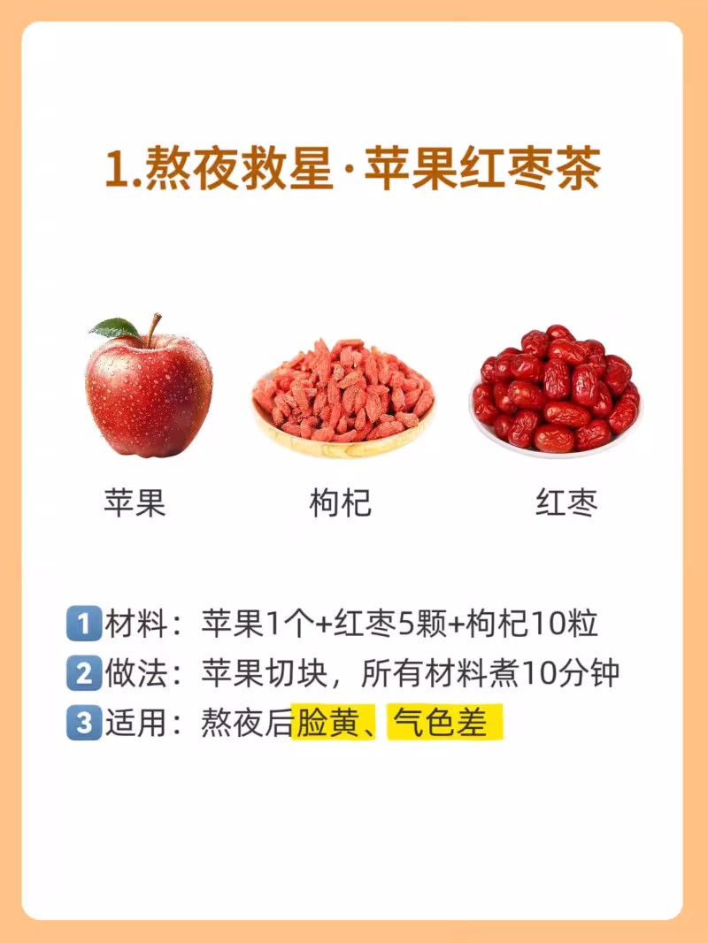 材料:蘋果1個+紅棗5顆+枸杞10粒