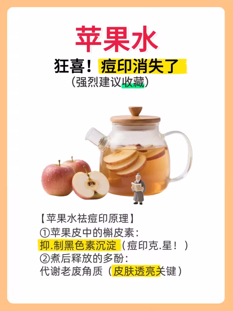 現代科學也證明,蘋果里的多酚+果酸能抗.氧.化、代謝黑色素,痘印淡了,臉也亮了!
