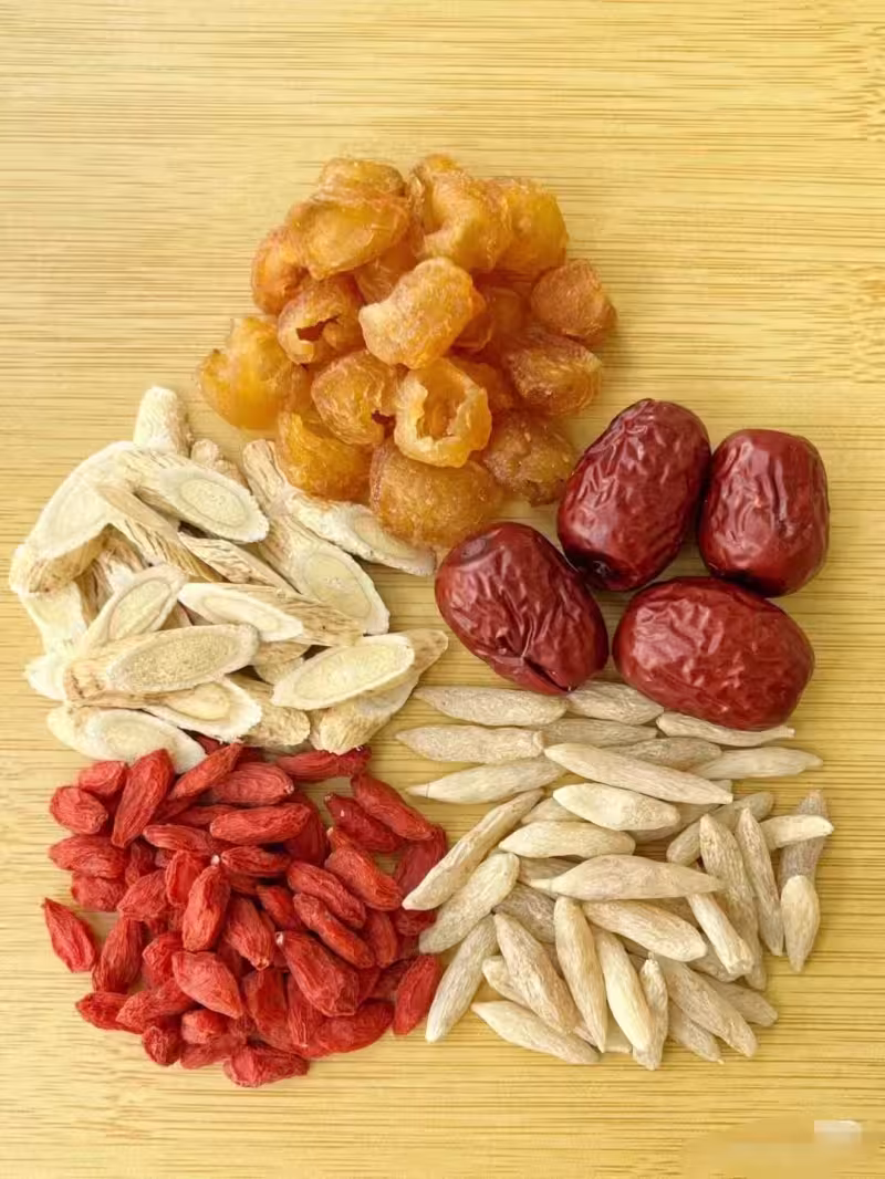 食材:黃芪,桂圓,枸杞,紅棗,麥冬