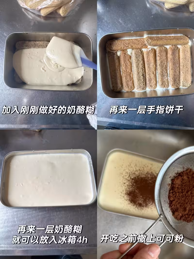 7️⃣送入冰箱冷藏4小時,開吃之前撒上可可粉,大功告成!