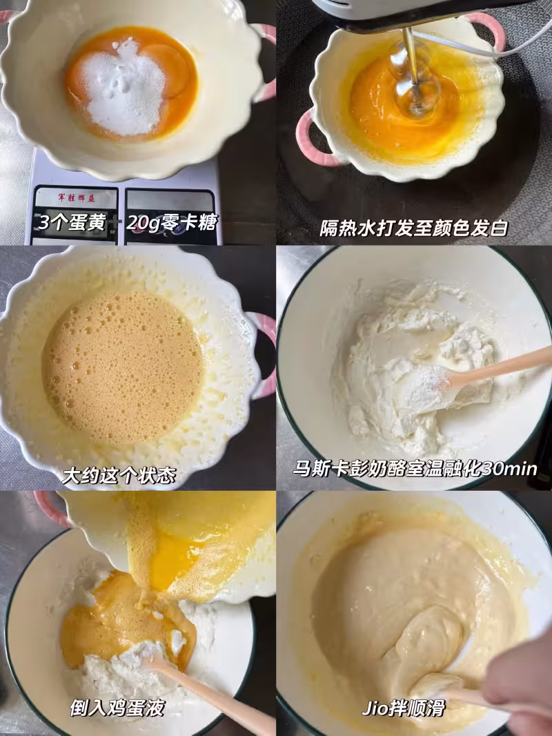 1️⃣3個雞蛋黃➕20g零卡糖,隔水打發至顏色變淺