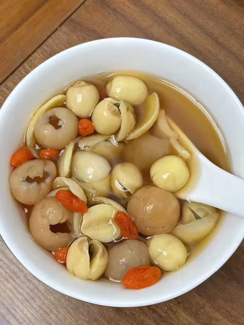 桂圓6顆、蓮子15克、百合10克、枸杞3克