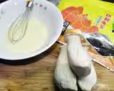 杏鮑菇調入麵糊,朝鮮海苔有麻油、鹽,所以不需再加鹽。