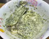 朝鮮海苔調入麵糊,慢慢攪勻,杏鮑菇切約0.3公分。