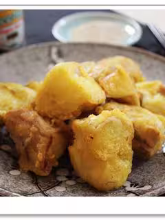 杏鮑菇一向都是用洋蔥和鰹魚露風味煮,這次迎合小孩用炸的,調味過的粉槳炸好後,咸香酥不用再霑醬或胡椒粉,多了香菜的香氣真的很對味。