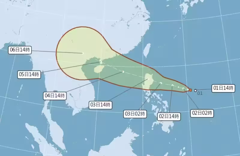 李名翔指出,菲律賓東方海面今天上午出現「熱帶性低氣壓」,雲系正在不斷整合,預估今晚至明天白上午,就有機會增強為「麥德姆颱風」,路徑會隨著高壓勢力往西移動,通過呂宋島進入南海,整體路徑比「樺加沙颱風」還要偏南,周五、周六最靠近台灣。