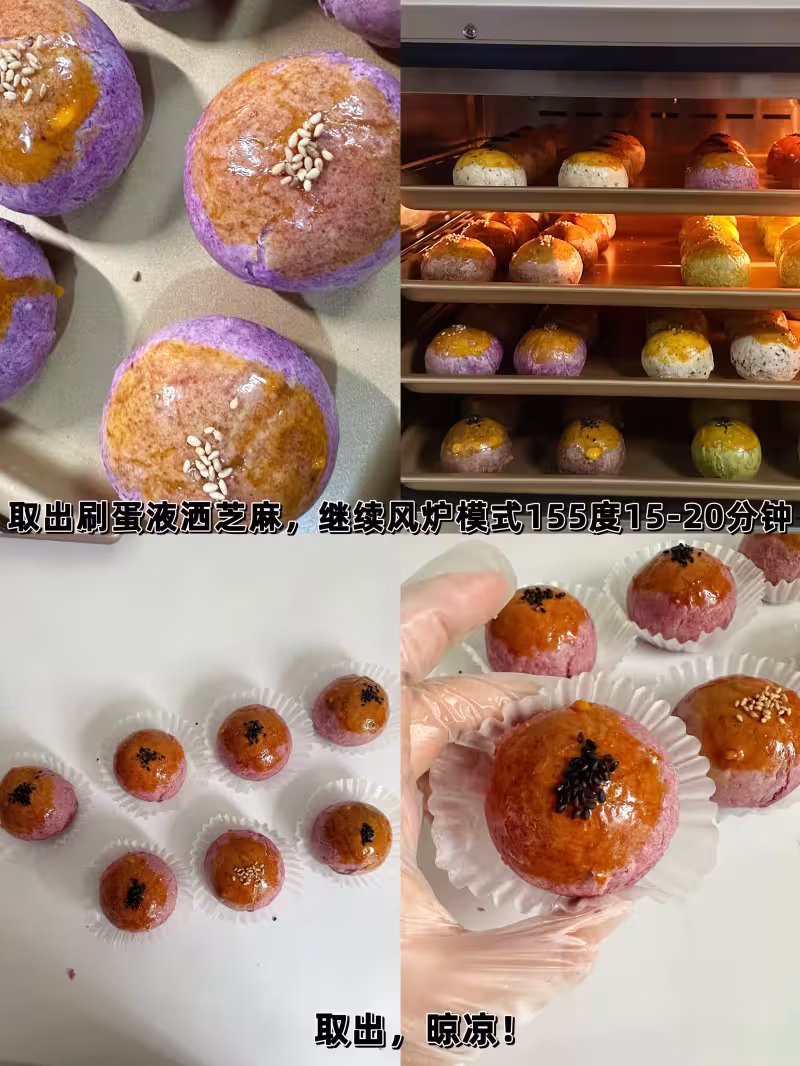 ✔️紫薯椰絲芋泥蛋黃酥烘烤好取出,放涼再打包。