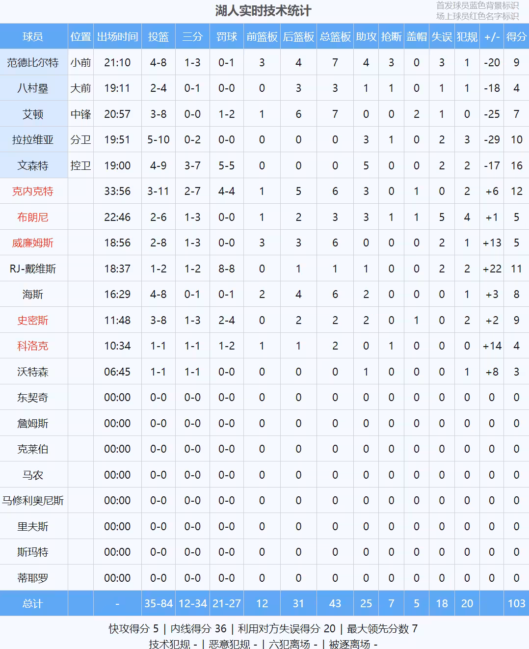 艾頓進攻端有點黃油手,不過面對勇士五小陣容時,艾頓在防守端展現了威懾力,多次干擾追夢和巴特勒的上籃。科爾同時換上霍福德和波斯特,增加內線高度。上一場10中2的克內克特,今天上半場手感回暖,湖人長時間保持微弱的領先。