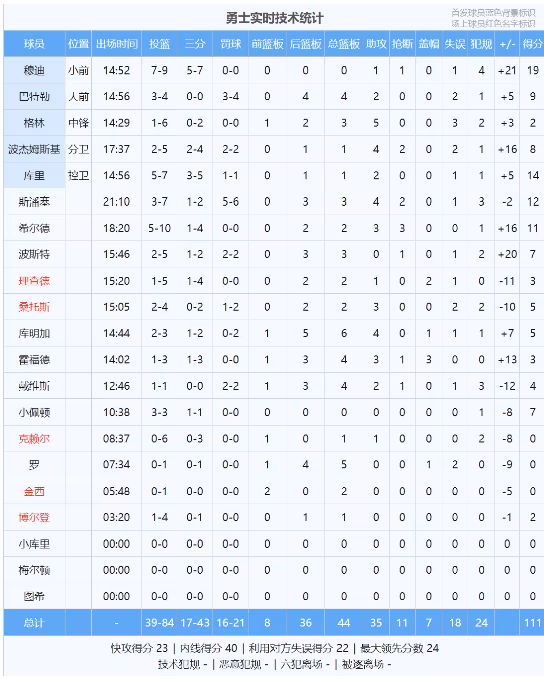 霍福德跟球隊無縫銜接,這才是勇士最開心的事情。最後看看數據,說說你的感受: