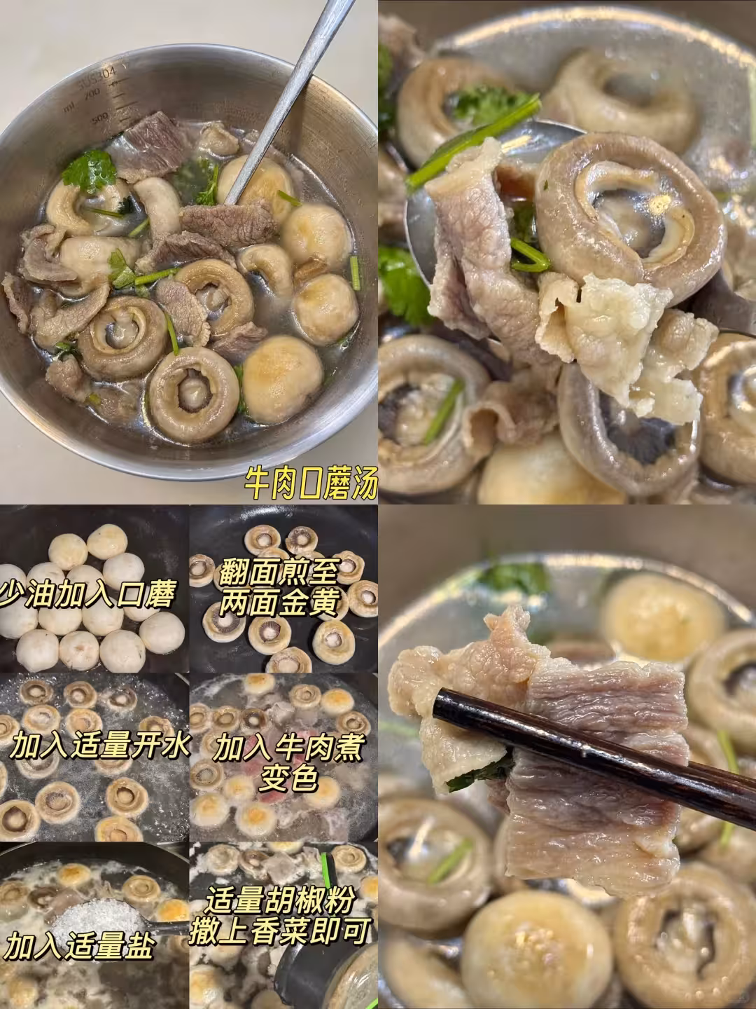 ✅第三款:牛肉口蘑湯 準備食材:口蘑、牛肉、香菜 配料:食鹽、胡椒粉