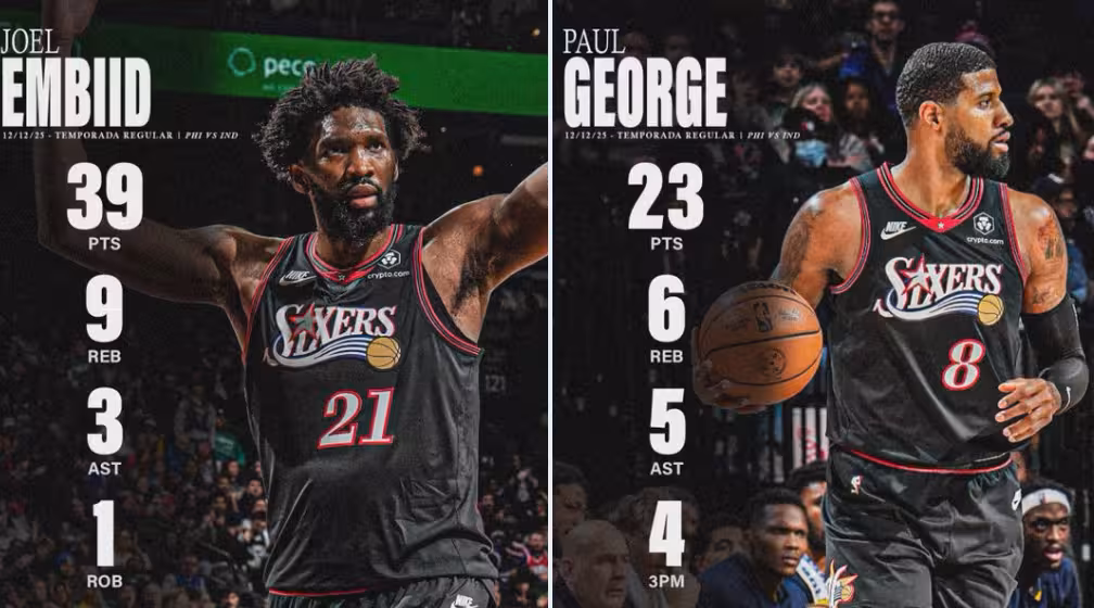 76人這套身價超1億美元的組合(喬治5166萬,恩比德5522萬),今天加起來拿到了62分15板8助,同時創下了個人賽季新高。