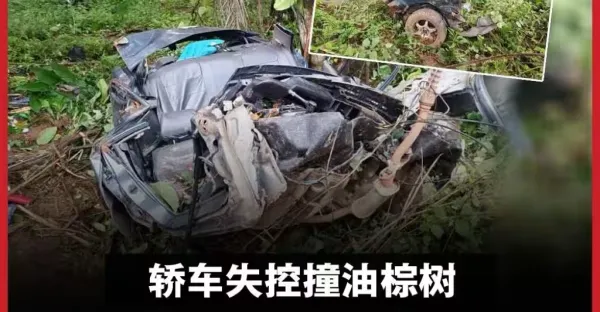 轎車失控撞油棕樹 衝擊力致車頭與車身份離 24歲男當場亡