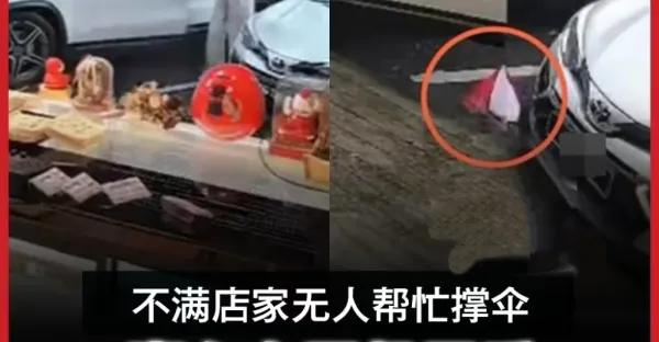 不滿無人撐傘用後扔路上 豪車女司機舉動令店家心寒