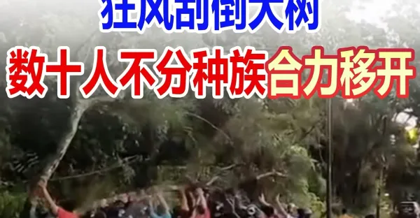 團結一心 在民間!狂風颳倒大樹 數十人不分種族 合力移開