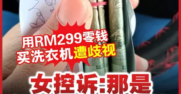 用RM299零錢買洗衣機遭歧視 女子控訴:那是媽媽辛苦攢來的