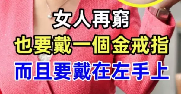 女人再「窮」也要戴一個金戒指,而且要戴在左手上,裡面大有講究!