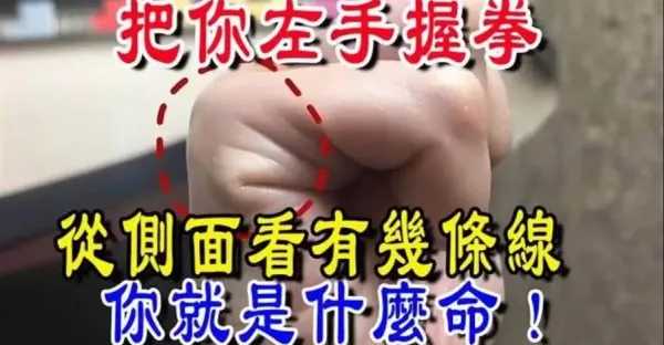 神准!把你左手握拳,從側面看有幾條線,你就是什麼命!算命的看完都說准