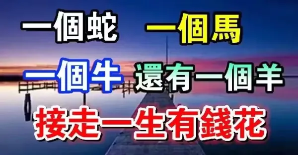今天起,一個蛇,一個馬,一個牛,還有一個羊!接走一生都會有錢花!