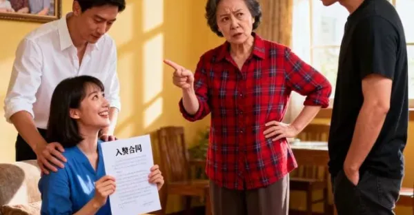 婆婆宣布家產全給大哥,我老公負責養老。我笑著拿出一份合同:媽,真不巧,您兒子3個月前簽的入贅合同,您看看