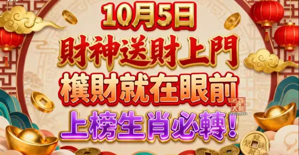 10月5日 財神送財上門 橫財就在眼前 上榜生肖必轉!